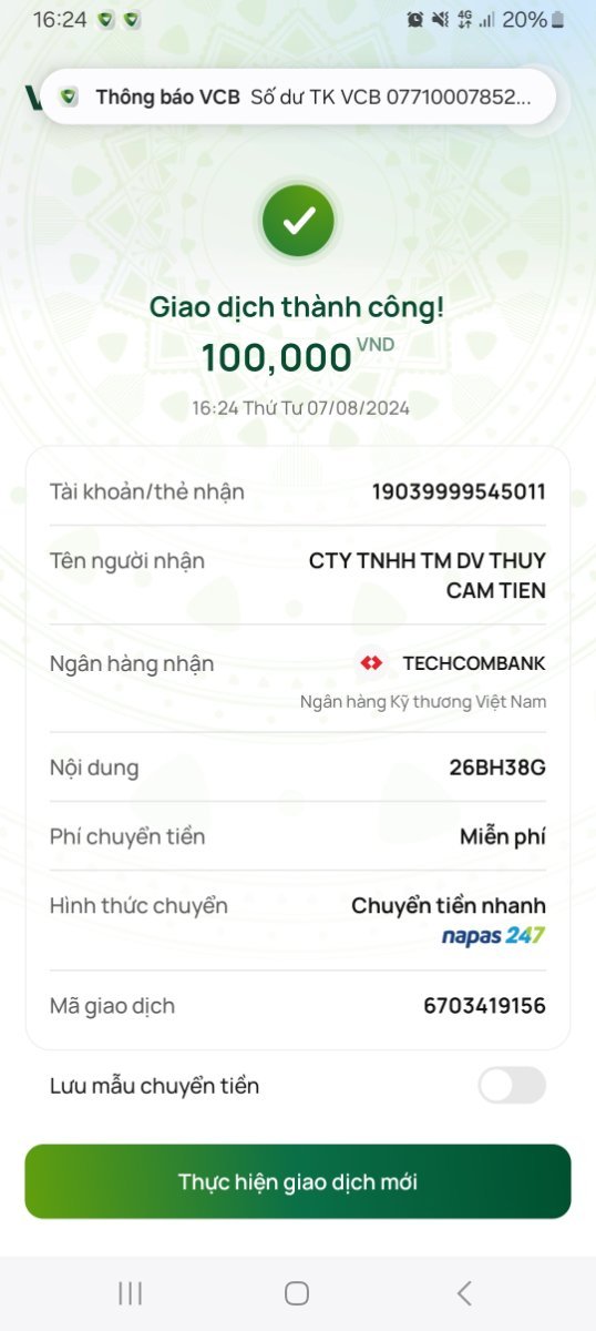 Xin hỗ trợ lệnh nạp tiền cho tk của tôi. Cảm ơn