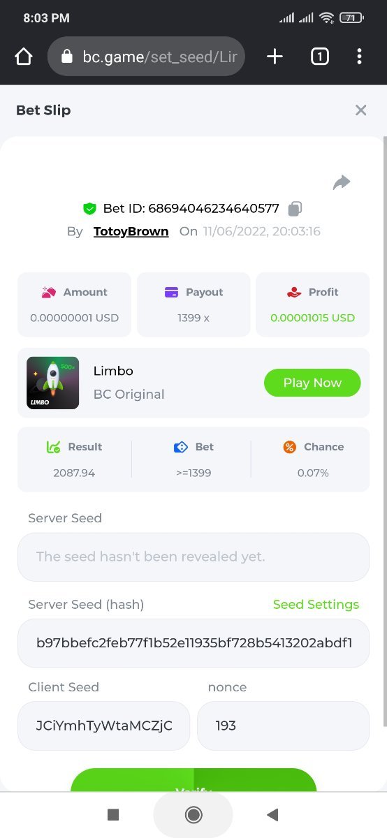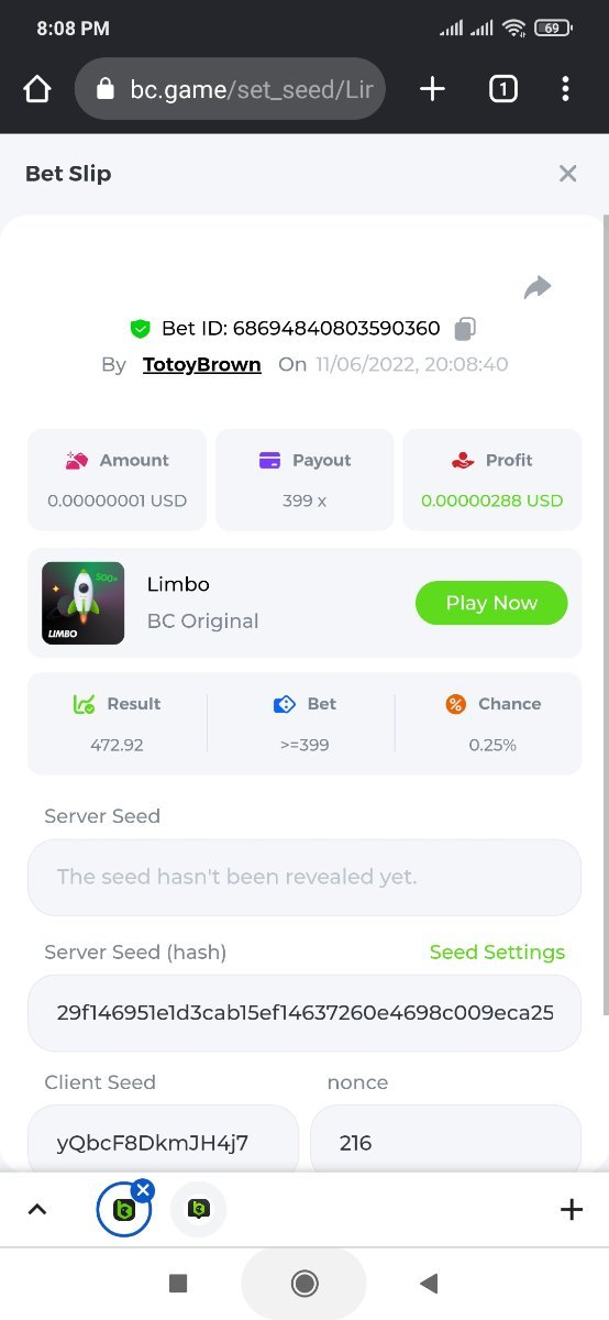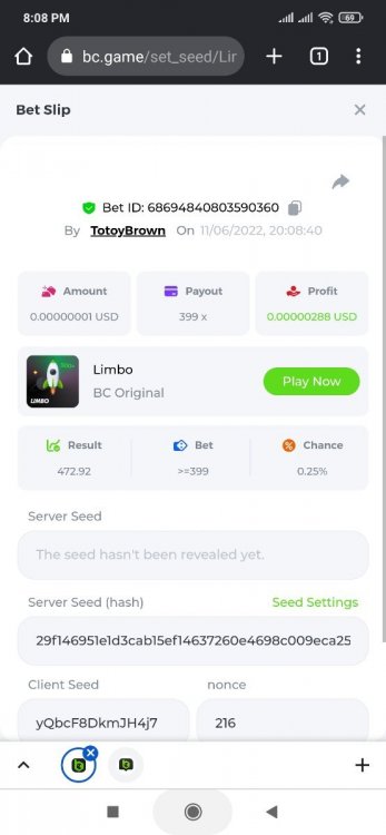 Game:Limbo Hunt: x100 and the last two numbers in the bet id must be 10