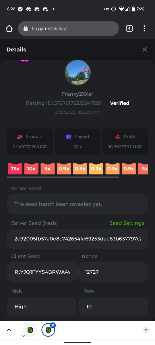 EASY: 1. Follow Instagram: whiteazn92 2. Post Photo/Video Tag BC.game: whiteazn92 https://www.instagram.com/p/CcUctBSu5Om/?utm_source=ig_web_copy_link 3. Follow BC on Twitter: Franky2XXer 4. Like and Retweet latest BC post: Franky2XXer 5. Follow BC Facebook page: Luke Hall 6. Cave of Plunder 7.50x: 7. 8. 20x multi Amatic Lady Fruits 100 Easter: 9. 30x Multi Gamomat Ramses Book Easter Egg: 10. Complete MEDIUM: 1. 10X Multi PlayNGo Easter Eggs: 2. Roulette Single Bet 0 (36X): 3. Get a 76x win on Plinko: 4. 60X Multi Wazdan Power of Gods Medusa Easter: 5. 6. 7. Keno Single 7, 8, 30 Medium Risk: 8. 90X Multi Big Time Gaming White Rabbit: 9. Black-Jack Only Red Cards: 10. HARD: 1. Wheel 49.5X: 2.PLINKO 420X: Bet ID#: 60146842272279722 3. Limbo 500X Multi: 4. 5. 6. 7. 8. 9. 10.