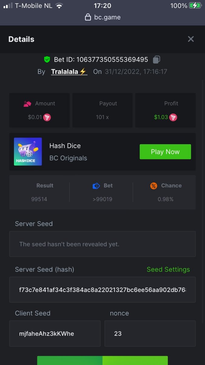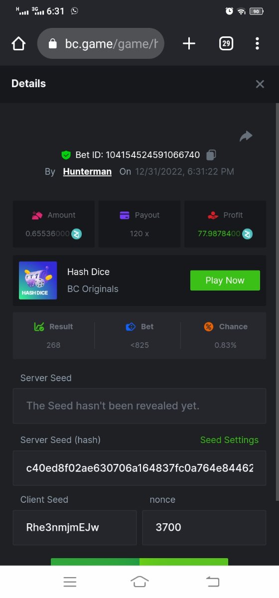 Black Tiger Posted December 31, 2022 Share Posted December 31, 2022 Read Carefully Before Start To Hunt Daily Challenges #116: Hash DiceHunt :Win the highest pay outMin Payout requirement 100xMin Level 4️Duration Starting : Now End time : 23.59 UTC Time How to Join? Make screenshot + paste your bet link + UID or Profile link Mini bet amount - 0.01$ Any coin allowedReward Prizes 1st Place....... $7 BCD2nd Place..... $5 BCD3rd Place...... $4 BCD 🎖4th Place......$3 BCD5th - 10th Place......$1 BCD 🏵 Winners will be announcing next day after Roll Point Link to comment Share on other sites More sharing options...