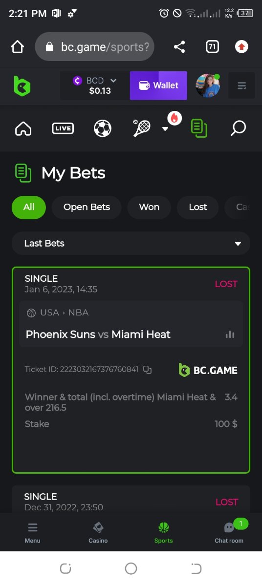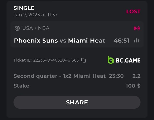 • Bet result with “LOST” is valid to submit.