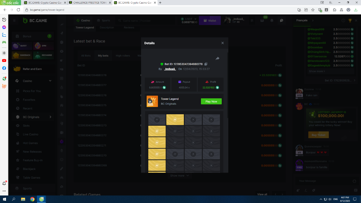 Member AkSyEn03 Posted April 7, 2023 Member Share Posted April 7, 2023 LÉGENDE DE LA TOUR $48 Exclusif Prestige TOWER LEGEND Challenge #83 Début : 07 avril 09h00 UTC ️Fin : 14 avril à 09h00 UTC Cagnotte : 48 $ ️ Qu'est-ce que le défi Salut les VIP ! Enfilez vos baskets et courez jusqu'au SOMMET de chaque tour pour remporter la cagnotte de cette semaine ! Veuillez consulter ci-dessous le tout nouveau tableau de distribution de la cagnotte pour en savoir plus. Nous allons essayer cette nouvelle méthode pendant un certain temps et en fonction des participations et des retours, nous augmenterons encore nos cagnottes. Prix disponibles 1er..............$15 2ème..........$10 3ème..........$5 4 à 13.........$2 Rejoignez et faites un basebet d'au moins 0,15, vous pouvez rejoindre 2 événements en même temps événement régional événement forum et obtenez une double récompense !!! Min Payout : Atteignez le sommet d'une tour à n'importe quel niveau de difficulté. Niveau VIP minimum : pas de niveau VIP minimum Mise minimale Facile – 0.05 $ Moyen - 0,025 $ Dur – 0,0125 $ Extrême - 0,00625 $ Cauchemar - 0,003125 $ Lisez les détails complets et les règles sur la PAGE DE L'ÉVÉNEMENT SOUMETTRE VOS INSCRIPTIONS ICI BCGAME Link to comment Share on other sites More sharing options...