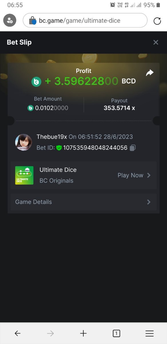 Maksypro Posted June 27, 2023 Share Posted June 27, 2023 Read Carefully Before Start To Hunt Forum Daily Challenges #279 Ultimated Dice Hunt : Win the highest pay out Min Payout requirement 30x Min Level 4 ️Duration Starting : Now End time : 23.59 UTC Time How to Join? Make screenshot + paste your bet link + UID or Profile link Any coin, with min bet 0.01 USD is allowed (jb/bb/bcl not allowed) Reward Prizes 1st Place.....$7 BCD 2nd Place.....$5 BCD 3rd Place.....$4 BCD 4th Place.....$3 BCD 5th Place.....$2 BCD 🏵 Winners will be announcing next day after Roll Point! 1 Link to comment Share on other sites More sharing options...