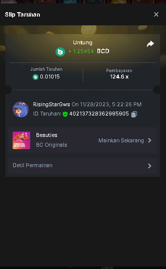 1st place . . . .  7$ BCD  - RisingStarGws - 124.6x  1.254