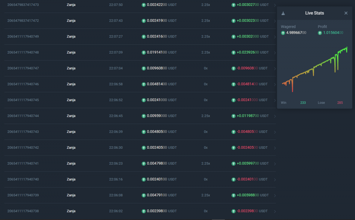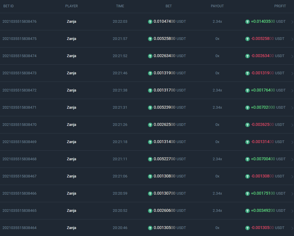 Yesterday I started with 0.3 USDT, and the betting goes like this.