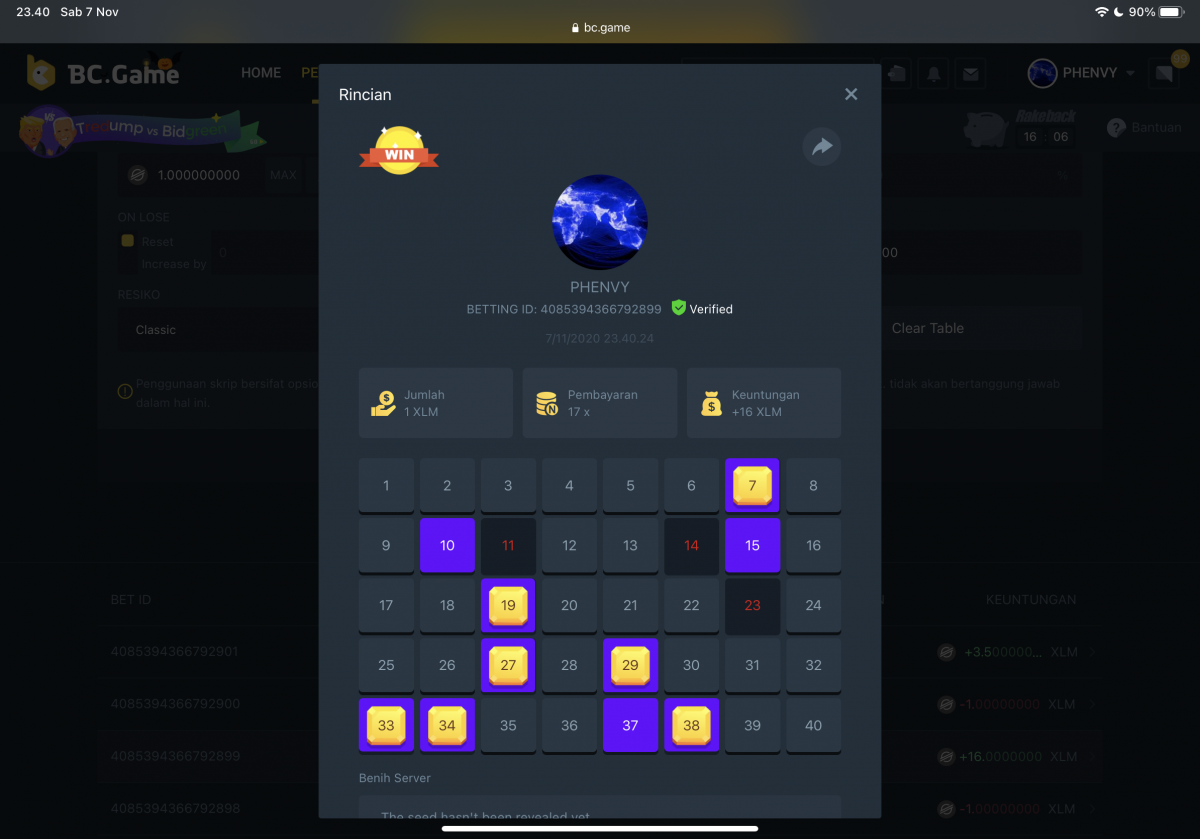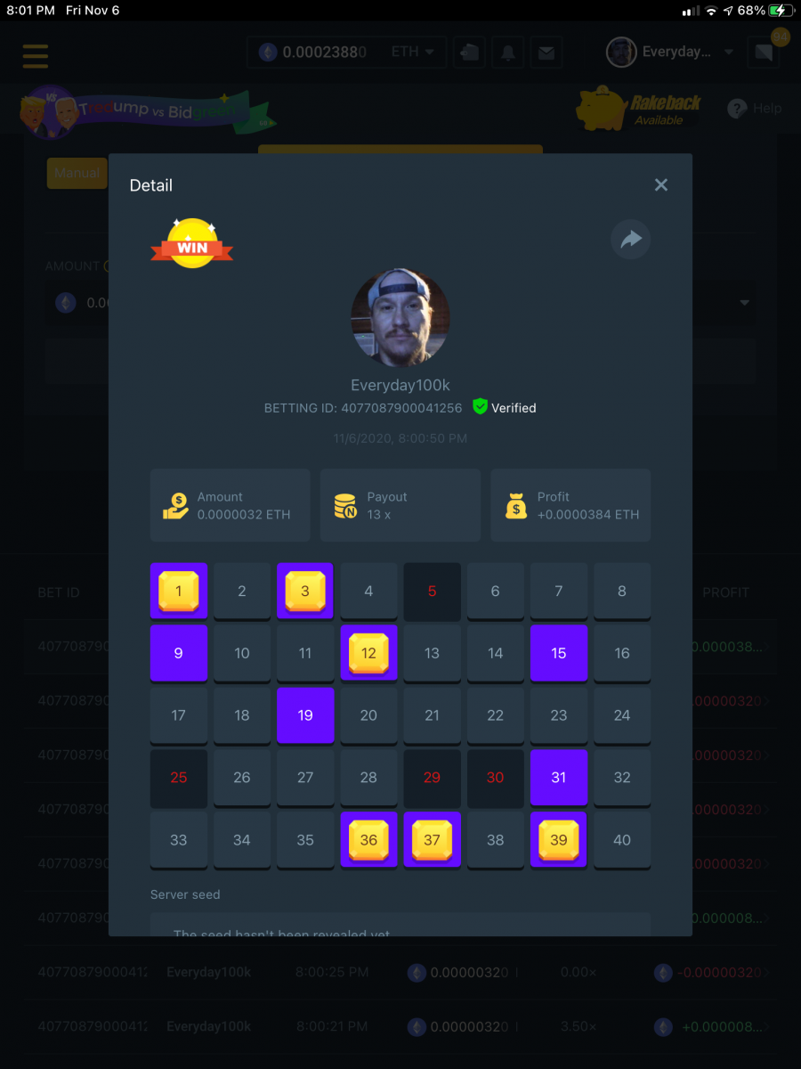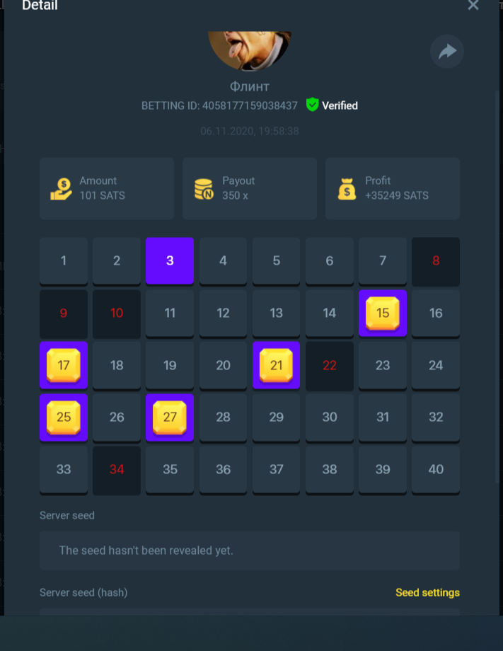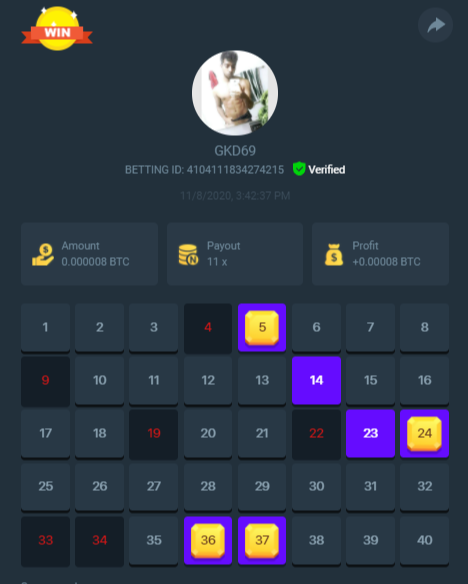 Black Tiger Posted November 7, 2020 Share Posted November 7, 2020 On 11/6/2020 at 10:24 AM, Salty said: R U L E S + D E T A I L S The rules for this flash challenge are listed below, please pay close attention and make sure to read thoroughly. C H A L L E N G E O B J E C T I V E Hit as many of following payouts that are listed as you can on any risk level in either Multiplayer or Single Player Keno: 11.00x 17.00x or 17.1x 50.00x 80.00x or 81.5x 350x 400x 710x 800x 900x 1000x Each payout that is hit will earn you (1) point. A total of of (10) point can be obtained (1 for each payout). 17x/17.1 have been adjusted so that you can hit either value can be hit. You will only be awarded one point for the 17.00/17.1x category even if both are hit. 80x/81.5x have been adjusted so that you can hit either value can be hit. You will only be awarded one point for the 80x/81.5x category even if both are hit. Must be a WINNING bet, meaning you cashed out successfully. The Minimum bet amount to qualify is 100 sats (0.00000100 BTC) or equivalent. Bets submitted with less than 100 sats will not count towards a prize. Bets must have been made AFTER the start of the challenge. The player with the highest number of points shall get top podium spot. In case of a tie, the player who has the highest total amount wagered across all bets will be the winner. If still tied, whoever posted first will be deemed the winner. One (1) entry submission per household - anyone caught trying to use multi accounts for the promo will be banned from this challenge along with all future ones. Play fair. Challenge ends on 11/08/2020 - this thread will automatically lock once challenge is over. Check to see when the thread locks for the exact time of when it ends compared to your local time. How To Submit your Entry Take a screenshot displaying the round detail like so and send a reply to this thread with it: Must be able to see betting ID so that your bet can be verified. Please do not make multiple posts, just edit your original one if you need to add a new payout or replace a payout with a better qualifying amount. PRIZE DISTRIBUTION For this particular flash challenge, we’ll be offering spots for 1st, 2nd and 3rd place. Prizes are as displayed below. 1ST ....... $200 2ND ...... $100 3RD ....... $50 ...But wait, that's not all! Valid participants who hit at least 4 out of the 10 payouts will receive a portion of a $350! BONUS: Hitting all 10 numbers guarantees you 0.25 ETH in addition to any podium position prizes you may qualify for -- Prizes will be paid directly to the winning accounts upon verification within 24 hours of challenge ending. Only valid entries that meet the challenge requirements will qualify for the prize pool, - bets must have been made after this challenge was created and must be placed with a minimum bet amount of 100 Sats or equivalent. We reserve the right to deem a player ineligible for this challenge if they are banned from the site or were found to be attempting to manipulate it in any way. Link to comment Share on other sites More sharing options...