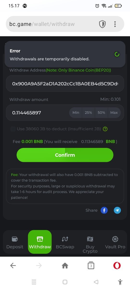 Admin BCGame_Bob Posted March 8, 2022 Admin Share Posted March 8, 2022 Hello there, kindly visit our support so we can determine the cause of the issue and provide you a steady assistance. Thank youhttps://support.bc.game Link to comment Share on other sites More sharing options...